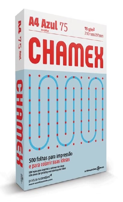 Papel Sulfite CHAMEX 500Folhas por pacote A4 AZUL (un. Caixa c/ 10 pacotes)